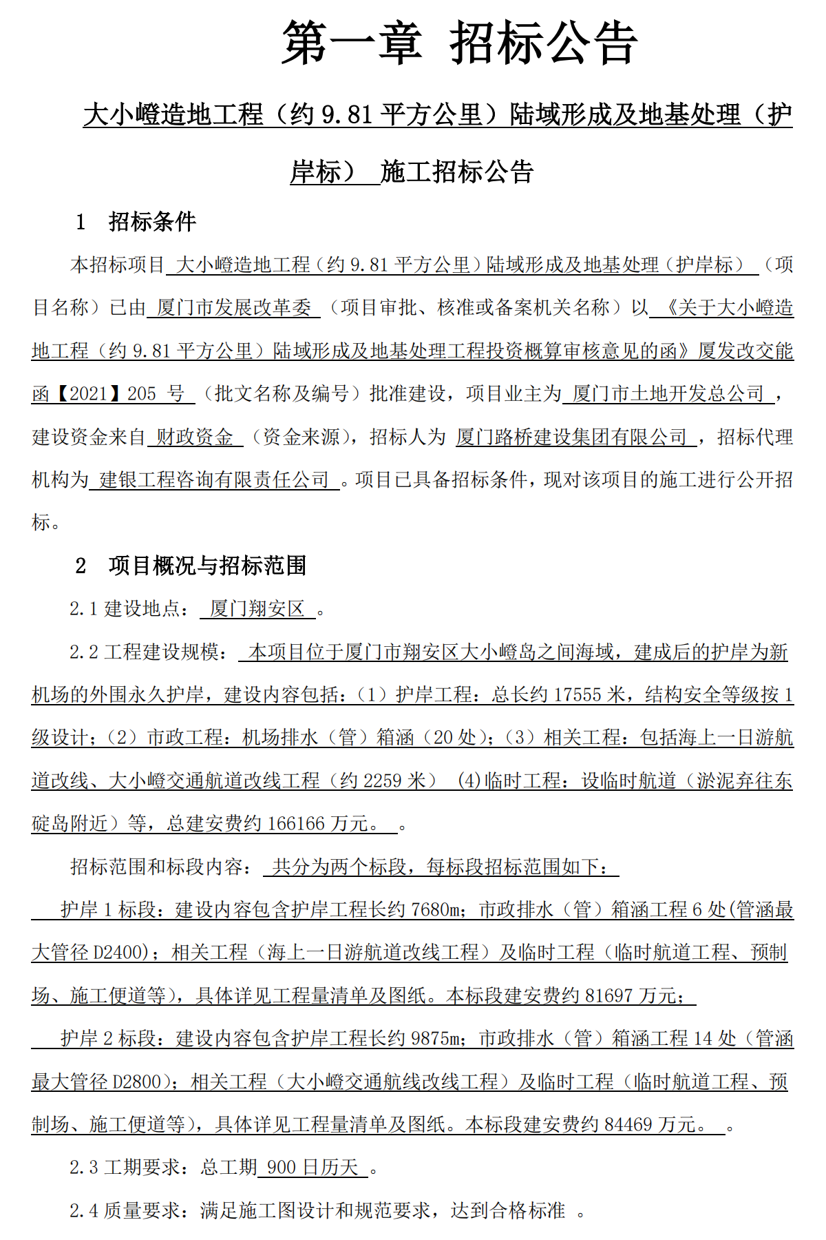 16億大項目!廈門大小嶝造地工程! 發布日期:2021年06月04日 瀏覽次數:5018 關鍵字: 公司 項目基本信息招標項目編號: E3500000717002736002招標人: 廈門路橋建設集團有限公司招標代理名稱: 建銀工程咨詢有限責任公司招標類型: 施工招標方式: 公開招標聯系電話: 13616032431